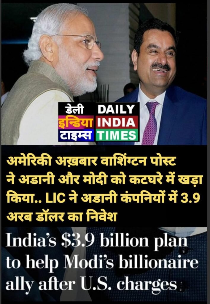अमेरिकी अख़बार वॉशिंगटन पोस्ट ने अपनी एक इन्वेस्टिगेटिव रिपोर्ट में दावा किया है कि भारतीय जीवन बीमा निगम (एलआईसी) ने सरकारी अधिकारियों के प्रस्ताव के तहत अदानी समूह की कंपनियों में लगभग 3.9 अरब डॉलर का निवेश किया.