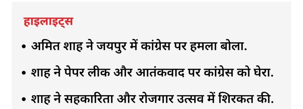 अमित शाह ने कांग्रेस पर चलाए तीखे शब्द बाण, पेपर लीक और आतंकवाद पर घेरा.. भजन लाल सरकार के कामकाज की सराहना की