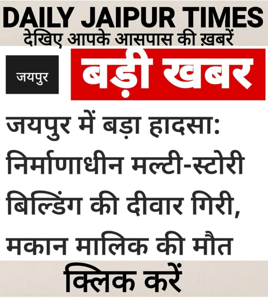 जयपुर। राजस्थान की राजधानी जयपुर में सोमवार दोपहर बड़ा हादसा हो गया। सुभाष चौक थाना क्षेत्र में निर्माणाधीन मल्टी-स्टोरी बिल्डिंग की दीवार गिर गई। हादसे के समय कुछ मजदूर वहां काम कर रहे थे, जो मलबे के नीचे दब गए।हादसे की सूचना पर पुलिस और सिविल डिफेंस टीम मौके पर पहुंची और मलबे में दबे दो लोगों (मकान मालिक और एक मजदूर) को बाहर निकाला। उन्हें इलाज के लिए एसएमएस अस्पताल ले जाया गया, जहां उपचार के दौरान मकान मालिक को मृत घोषित कर दिया गया