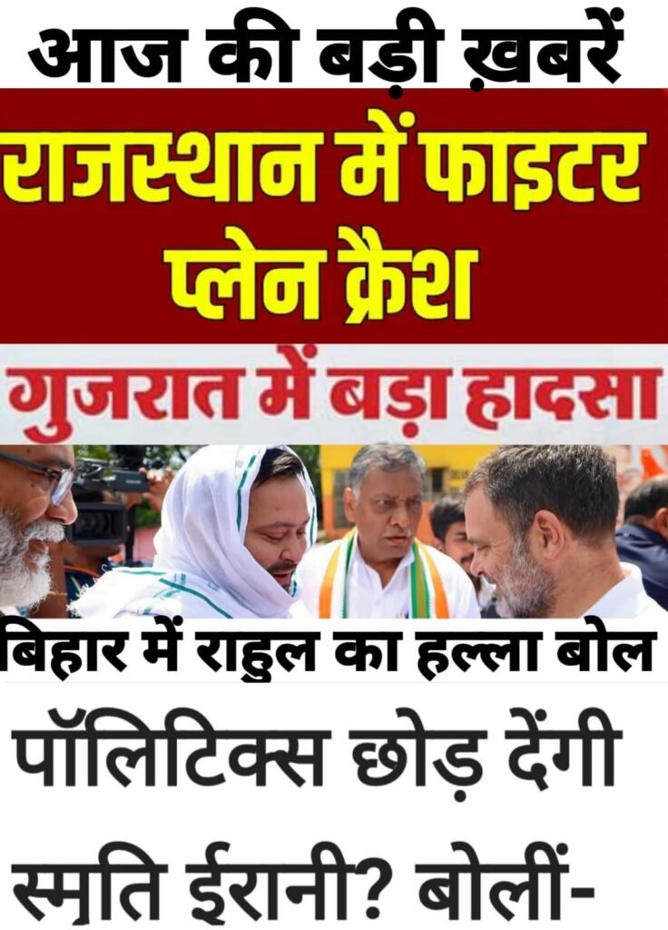 आज की बड़ी ख़बरें: गुजरात में पुल गिरने से 5 मरे, राजस्थान में विमान दुर्घटना,राहुल गांधी ने बिहार में हल्ला बोला, स्मृति ईरानी का राजनीति से मोह भंग और भी बहुत खबरें….