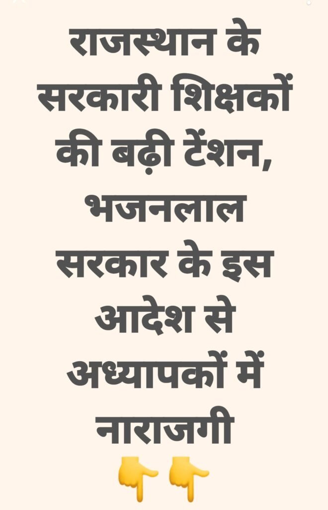 राजस्थान के सरकारी शिक्षकों की बढ़ी टेंशन, भजनलाल सरकार के इस आदेश से अध्यापकों में नाराजगीRajasthan Teachers: राजस्थान की भजनलाल सरकार के एक आदेश ने सरकारी अध्यापकों की चिंता बढ़ा दी है। सरकार ने प्रदेश के सभी अध्यापकों को एक्स्ट्रा क्लास लेकर सिलेबस को पूरा करने के निर्देश दिए हैं